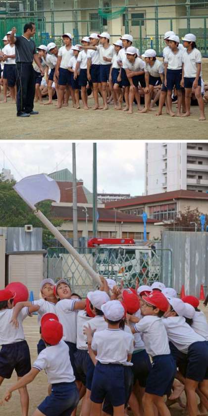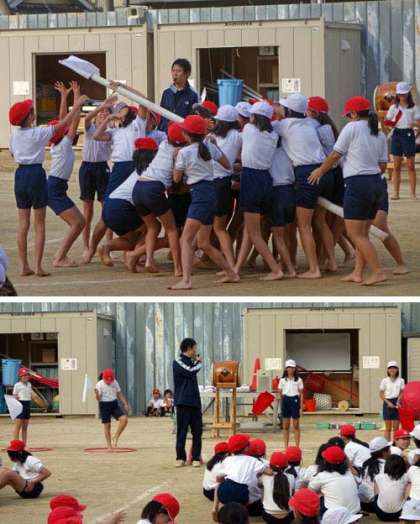 1時間目、運動場で棒たおしの練習。2回目です。1回目は“やってみた”レベルの練習だったので、本格的には初めてですね。