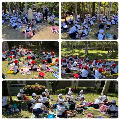 1年生は見学を終え、お昼ご飯の時間です。ご家庭で用意していただいたお弁当をおいしそうに食べています。みんなと一緒に楽しそうに過ごしています。