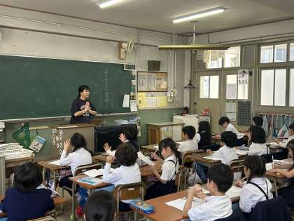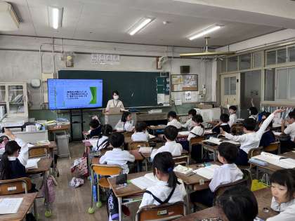 2年生国語科の学習「はたらく人に話を聞こう」の様子です。学校で働く先生や管理作業員さんに、お仕事のことをインタビューしました。