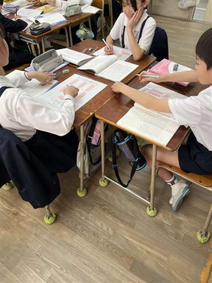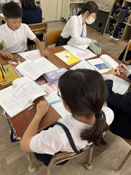 説明文の構造を理解するために、読み取ったことを図に変える学習をしました。一人ひとりが一生懸命頑張って読み取り、構造図を作成することができました。