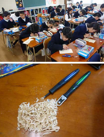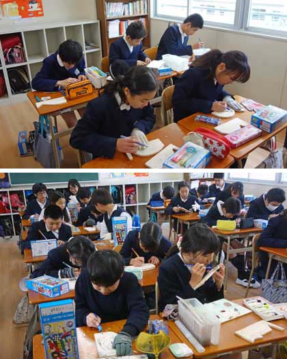 6時間目、教室でテープカッターの制作に取り組んでいました。この時間は、彫刻刀で模様を彫ったり、絵の具で色を塗ったりしている子がほとんどでした。中には、組み立てたら完成!というところまでできている子も。