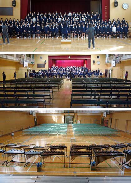 写真は、6年生の学年発表「時はながれる」の準備、練習の様子です。一番上の写真は2月3日(水)撮影。5日(金)にひな壇を設置、10日(水)に楽器を運び込んでいました。オーディションやら合音やらは、すべてこの発表会のためだったんですね。今日も、熱のこもった最終リハーサルを行っていました。6年生にとっては小学校生活締めくくりの参観授業。保護者のみなさん、お楽しみに!