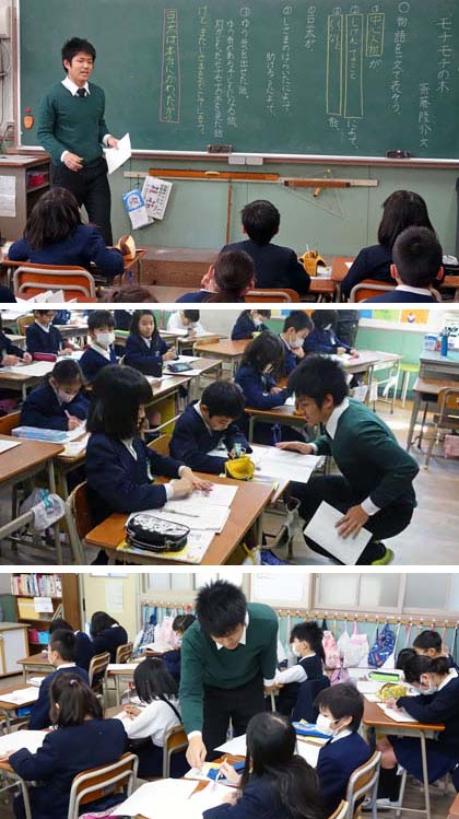 3時間目、国語の学習。物語「モチモチの木」を読んで、中心人物「豆太(まめた)」の変化を読み取る学習をしていました。