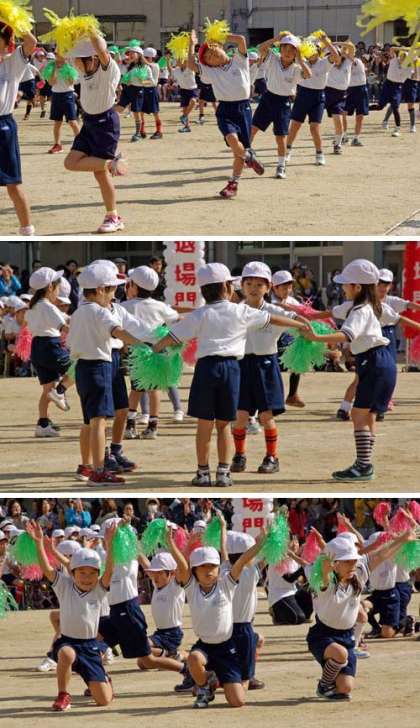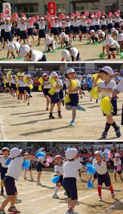 閉会式の「学校長の話」の言葉とともに、各学年の演技の写真を掲載したいと思います。それでは1年生から。