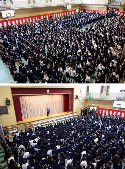 まずは、今年度最後の校歌&100周年記念歌斉唱。ピアノ伴奏=音楽のK先生、指揮=3年生のS先生という超豪華コラボレーション(笑)で、気持ちよく歌い納めました。