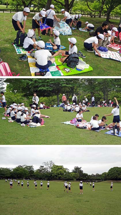 まずは公園内をオリエンテーリング。班のメンバーで地図を確認しながら進みます。スタミナ十分で、足取りもかろやか! どの班も、ずいぶん早くゴール(若草山)に着いていました。