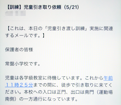 本日(21日)、土曜授業の3時間目を使って、児童引き渡し訓練を実施しました。