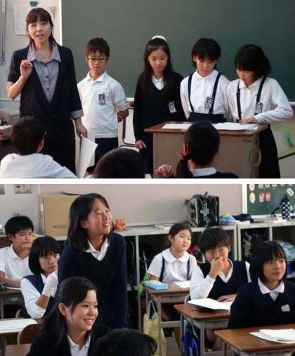 先日、4年生に授業をしてくださったフリーアナウンサーの西村実花さんが、5年生に授業をしてくださいました。「ことばの持つ力」がテーマです。