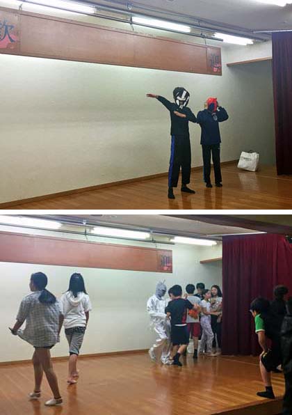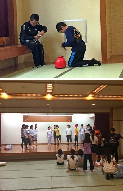 夕食後の「爆笑とき犬タイム」に向けて、最終の打ち合わせ・準備・練習をする4組の子どもたち。