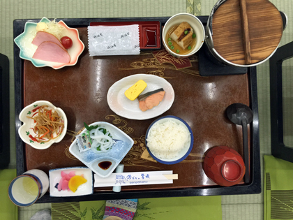 朝ごはんです。旅先の宿での朝食、ほんとおいしいですよね。