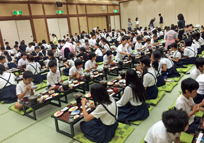 右上の一人鍋の中身が気になる…。まさか、まさか、すき焼きなのか?