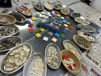 続いて、マグネットづくりの様子です。色も形もさまざまな貝殻を組み合わせて作る、オリジナルの小物です。
