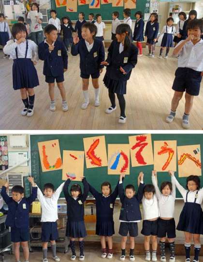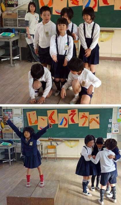 いやあ、楽しい劇でした! 実は、後半の歌とエンディングの部分を見せてもらったので、教室を出ようとすると、子どもたちに「前半の劇も見ていって!」と囲まれてしまって…。