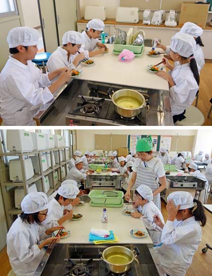 5年生になって家庭科の学習がスタート。包丁や鍋を使った本格的な調理実習は今回が初めてでしたが、スムーズにできたみたいですよ。