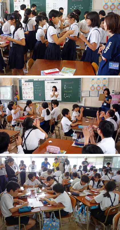 6時間目、6年3組で教員対象の参観授業(教員の研修)が行われました。水曜日は全学年5時間授業の日ですが、6年3組だけ6時間も授業を行いました。今年度の本校の研究教科である、外国語活動の授業です。