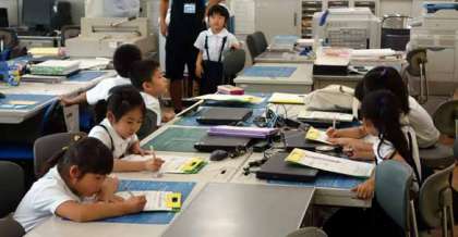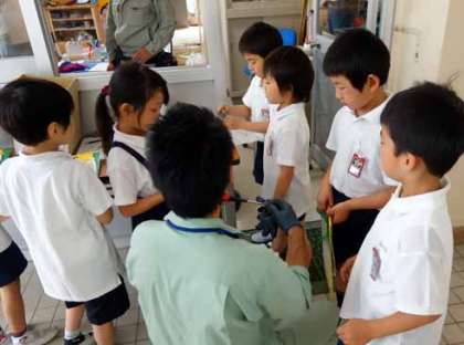 2時間目、学校たんけんをしました。今回は1年生だけで、行きたい教室を決めてじっくりたんけんです。その教室で授業や仕事をしている教職員に聞きたいことも考えていて、インタビューもします。
