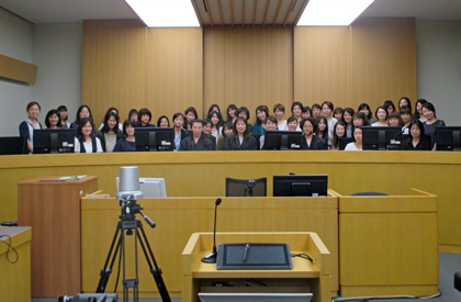 まず、裁判が行われていない法廷を見学しました。そして、裁判の仕組みや流れ、手続き、傍聴の注意点等の詳しい説明を受けました。