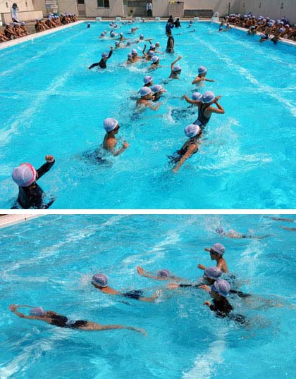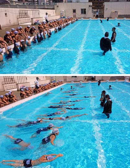 常盤小学校では、毎週金曜日の放課後に、プールの清掃と換水(かんすい:水槽などに入った水を交換すること)を行っています。週初めの月曜2時間目にプールに入る2年生は、実は一番フレッシュな状態のプールに入れているのです! 知っていましたか?