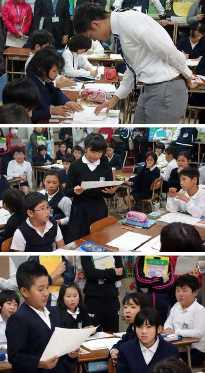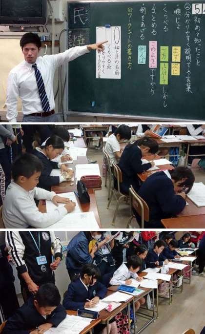 6時間目、4年4組で、教員対象の参観授業(教員の研修・研究)が行われました。他のクラスは5時間授業で下校したのですが、4年4組だけ6時間も授業を行いました。教科は国語です。