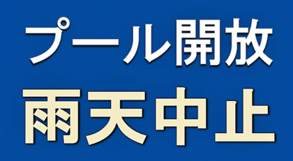 ただし、雨のため、本日午前中のプール開放は中止といたします。