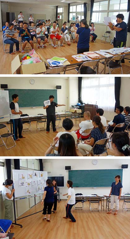 初日の27日(水)は、小学校の英語学習について、講師の先生と意見交換をしました。また、講師の先生が行うオールイングリッシュの模擬授業に児童役で参加しながら、先生の発問の仕方や授業でよく使う基本フレーズ、授業の進め方を学びました。