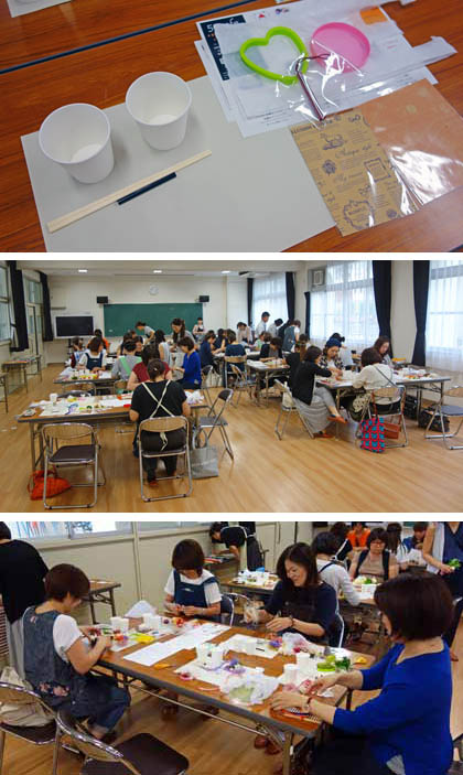 PTA成人教育委員会主催の「ワックスバー講習会」が、多目的室で行われました。講師は、キャンドル作家のmai(まい)先生です。