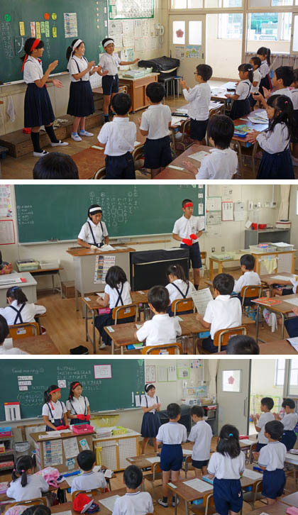 ホップタイム、応援団員が低学年の各教室に出張し、応援の指導&練習をしました。
