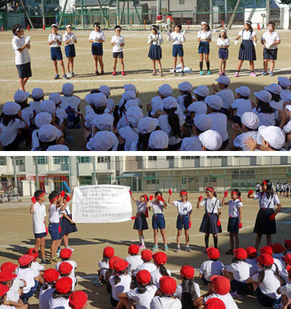 応援団員が、実演しながらていねいに説明していました。「分からない子いる?」「オー!で手を上げます!」難しいところは、くり返し練習です。