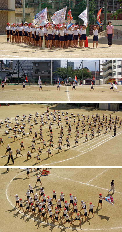 5年生の練習。先日出来上がった学級旗が、初めて使われました!