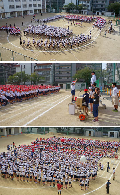 「つなごう ときわの輪」は、大玉を、1〜3年生は転がし、4〜6年生は頭上を送っていきます。一発勝負、今年の勝者はどっちだ?