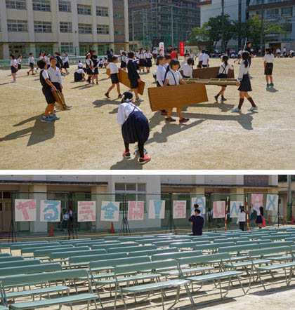 上の写真は、昨日(15日)の前日準備の様子です。