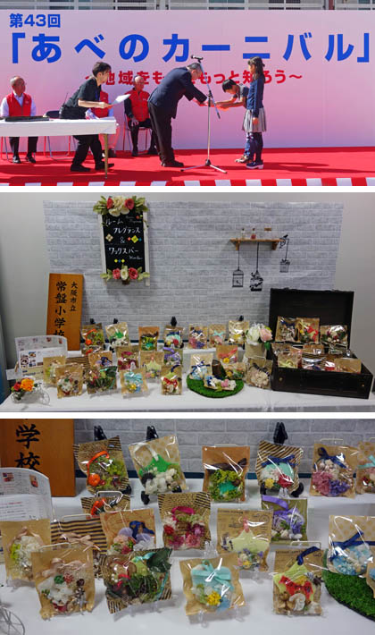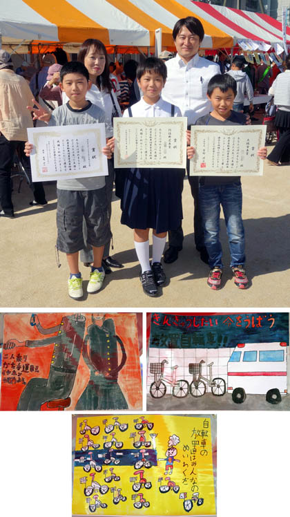 オープニングセレモニーの後、ステージでは、「ゆめまちロードOSAKAあべの」主催、放置自転車禁止・ポイ捨て禁止ポスターの入選作品の表彰がありました。常盤小学校からは、今年も5年生児童が応募したのですが、3人の児童が入選! それぞれ「大阪市長賞」「阿倍野区長賞」「ゆめまちロードOSAKAあべの大賞」を受賞し、表彰されました。おめでとう!