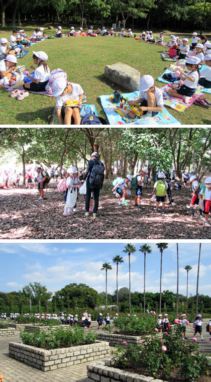 遊んだ後は、お楽しみのお弁当タイム。植物園で食べました。キャラ弁もちらほら、食べるのがもったいない!?