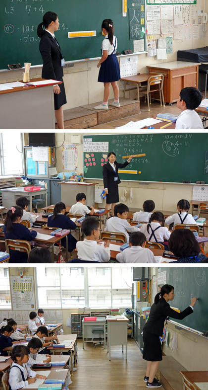 教育実習生の研究授業、最後は1年1組のU先生です。算数でたしざんの学習をしていました。