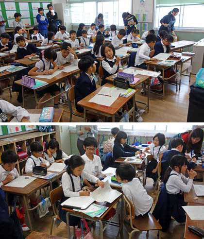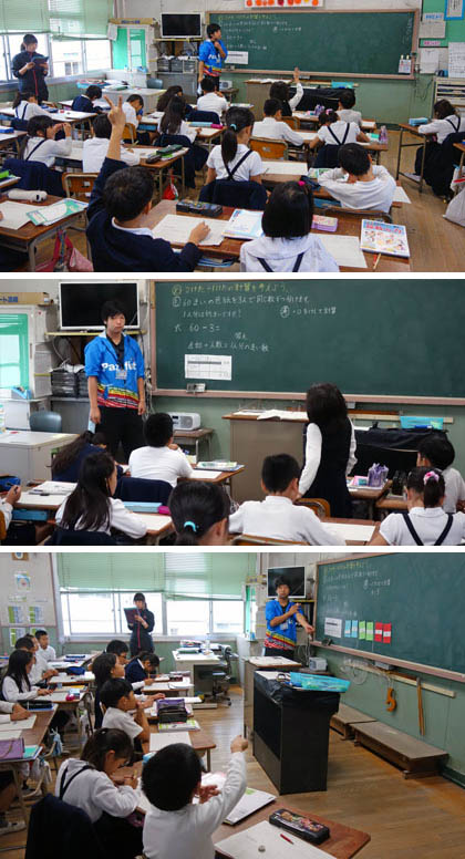 4時間目、算数の「大きい数のわり算」の学習。今までに学習したわり算の考え方を使って、2けた÷1けたの計算の考え方・仕方を理解しようという内容です。