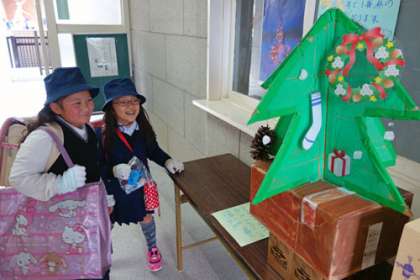 分校ロビーに、理科補助員のS先生が作ってくださったクリスマスツリーが飾られていました。