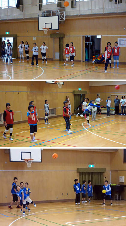 区の大会に向けたドッジボール練習、3日目と4日目です。両日とも、たくさんの大人の方・中学生が、練習相手・サポーターとして参加してくださいました。