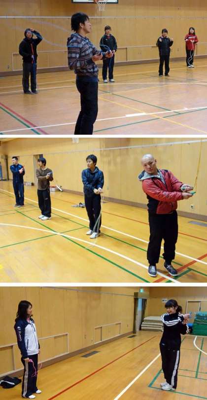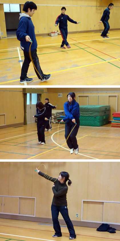 放課後、教職員対象のなわとび研修会が行われました。体育主任のK先生が講師です。