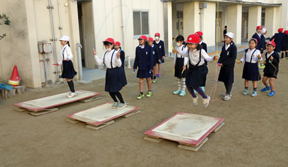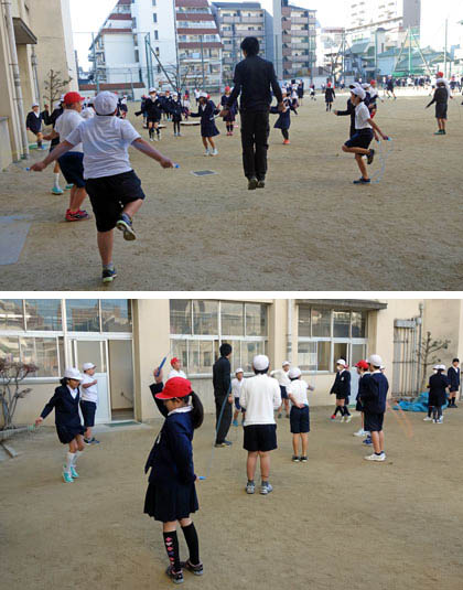 なわとび練習台が帰ってきました。冬にだけ、運動場の職員室前に設置されるなわとび練習台。休み時間、さっそく行列ができていました。