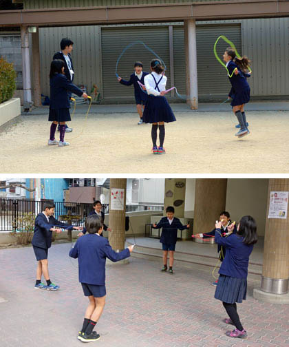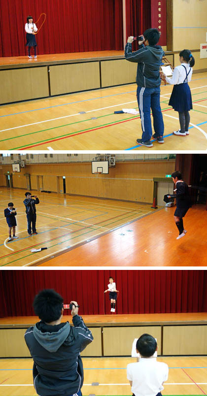 6時間目の委員会活動、運動委員会の児童が「なわとびの正しい跳び方解説ビデオ」の撮影をしていました。