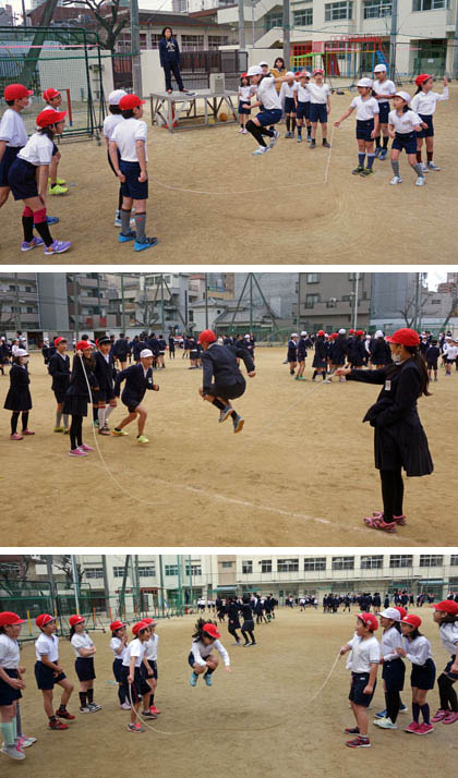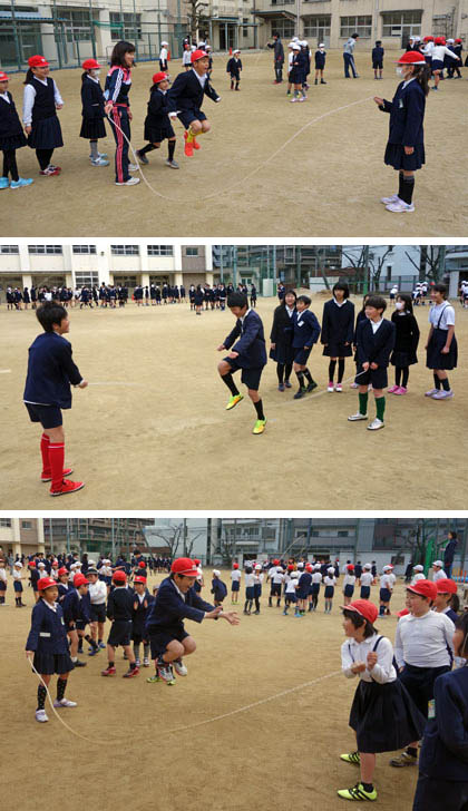 ジャンプタイム、先週までは短なわで個人技の練習・体力づくりをしていましたが、今週からは長なわにチェンジです。
