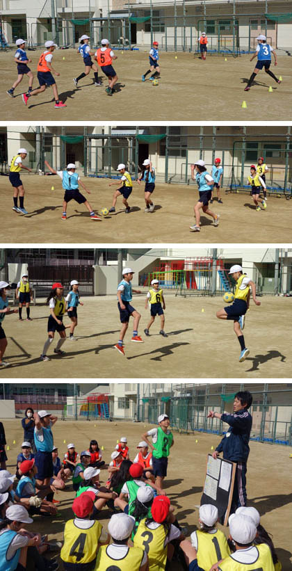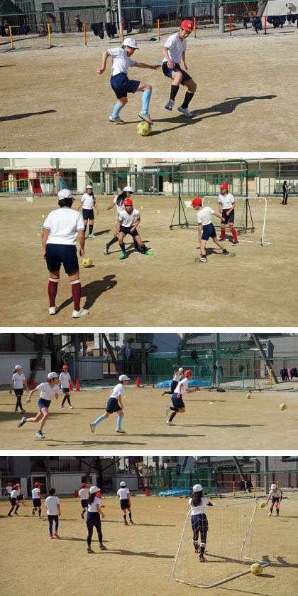 3時間目、4組,5組の子どもたちが、ラインサッカーに取り組んでいました。上の写真は、5組の様子です。