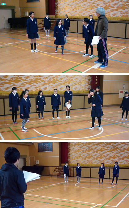 演劇クラブの発表は、2月28日(火)。クラブ活動は、発表会までにあと1回のみです。ラストスパート!という感じでしょうね。今日来ていたのは、14人の部員。担当のK先生とS先生の演技指導やアドバイスを受け、真剣な表情で練習していました。