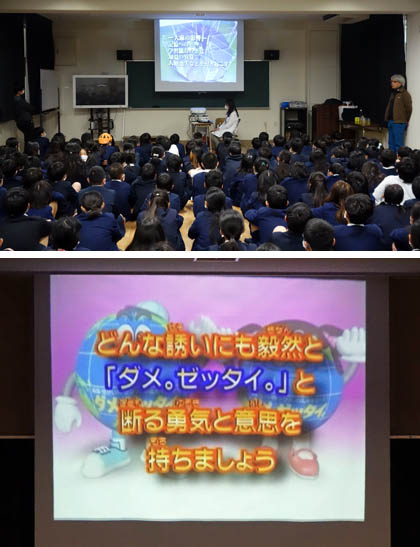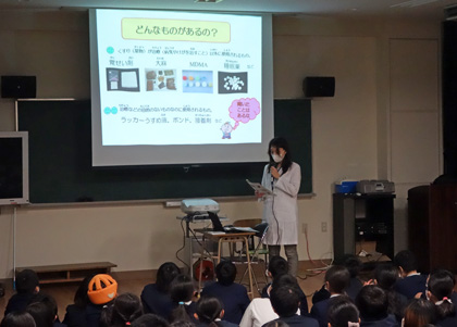 6時間目、多目的室で、6年生を対象に「くすりの正しい使い方講座」が行われました。講師は、学校薬剤師のN先生です。
