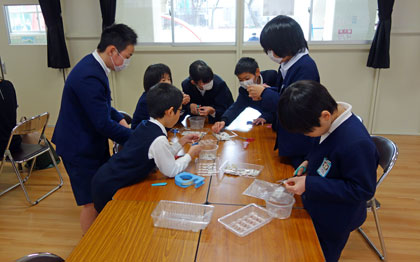 15分休みに、ベルマーク委員会の児童がお手伝いに来てくれました。でも、よく見ると、ベルマーク委員ではない子も作業をしてくれています。