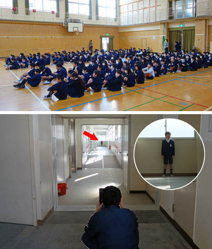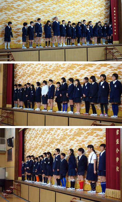掃除後、講堂に集合した6年生。18日(土)オープンスクール2時間目に行う「卒業〜決意表明〜」の練習をしていました。