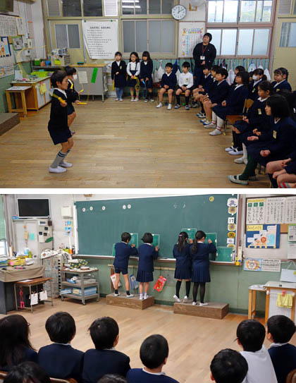 上の写真は、2年2組。明日の2時間目に予定している生活科の発表会「こんなこと できるようになったよ」のリハーサルの様子です。みんな真剣な表情で取り組んでいましたよ。