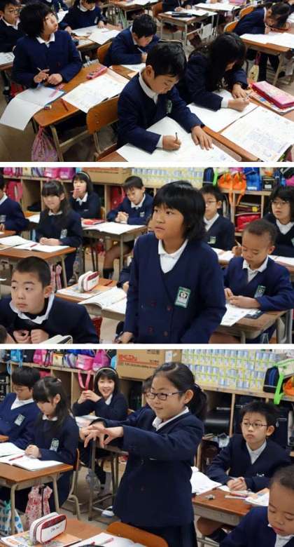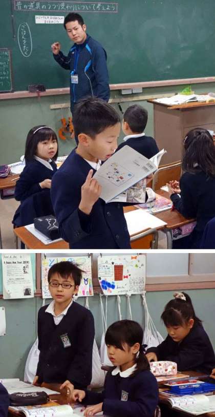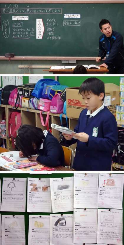 2時間目、社会の学習。ごはんを炊くための「かまど」を取り上げ、道具の移り変わり、昔のくらしの様子や変化について学習していました。