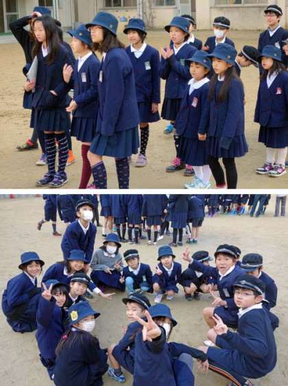 昨日、雨でできなかった児童集会を、今朝行いました。今日のゲームは「タンバリンゲーム」です!