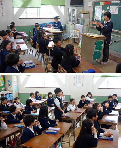 4時間目、栄養教諭のT先生が、大豆(だいず)についての授業をしていました。